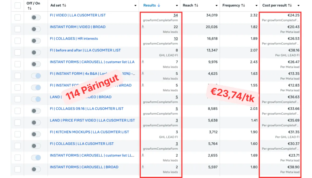 Tõime Rootsis tegutsevale ehitusettevõttele 299 kodu renoveerimise päringut, kes olid kõik andnud mõista, et nende eelarve on >€10,000